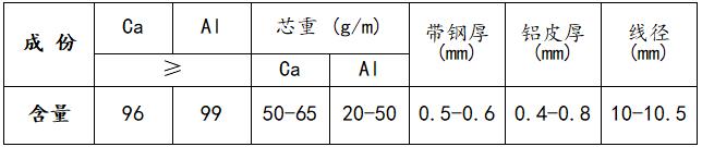 實芯鈣鋁線由內(nèi)層鋁皮包裹鈣絲,外層鋼帶軋邊咬合而成。 ①.能提高鈣的收得率,有利于調(diào)整和控制易氧化元素和微量元素,起到純潔鋼液及改變夾雜物性能和形態(tài)的作用,提高鋼水質(zhì)量。